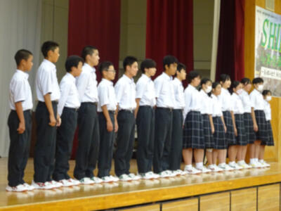 全校朝会では、特設駅伝部の壮行式を行いました。9月8日(月)に開催された地方大会では、女子が初優勝。男子は統合初年度以来の優勝を飾り、県大会への切符を手にしました。トップと30秒差の3位を堅持し、最終5区で見事大逆転した女子。自分のペースを大きくは崩さず、第1走から終始トップを走り続けた男子。10月3日(金)、秋の花巻路での快走を祈ります。